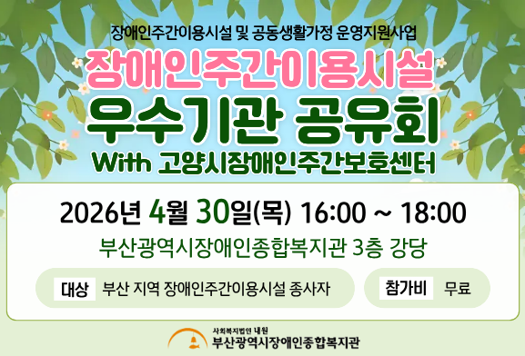 2026년 장애인주간이용시설 우수기관 공유회 참여 안내